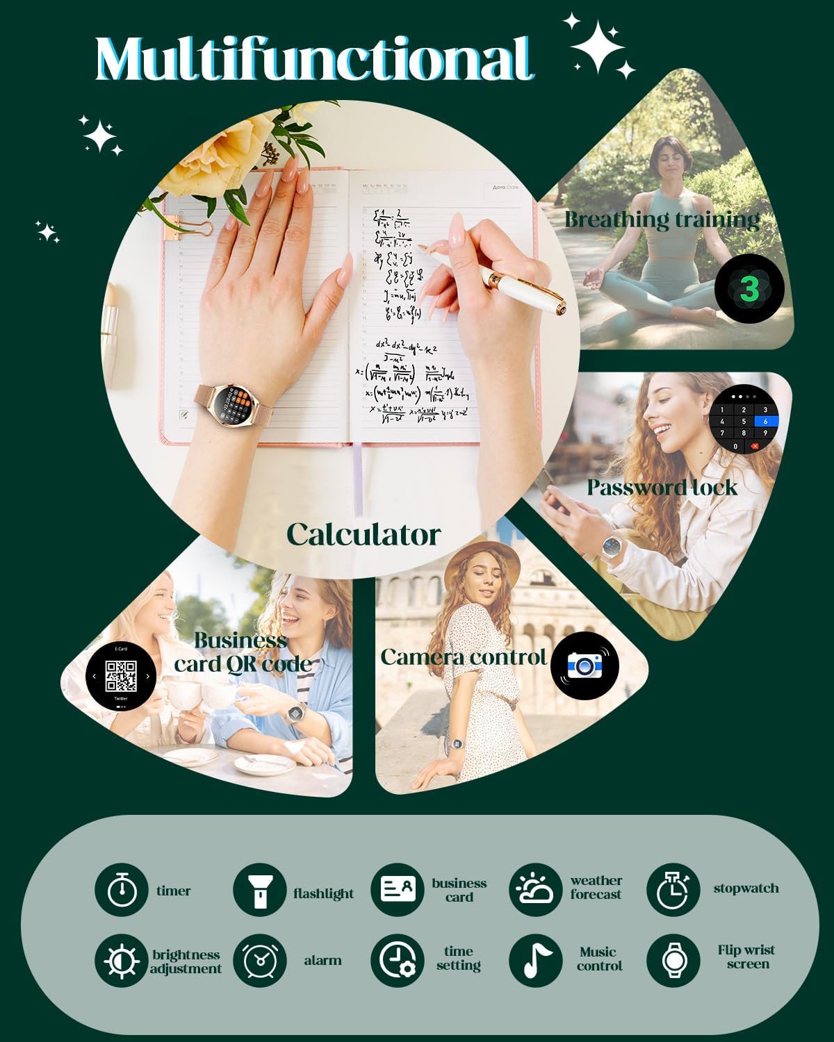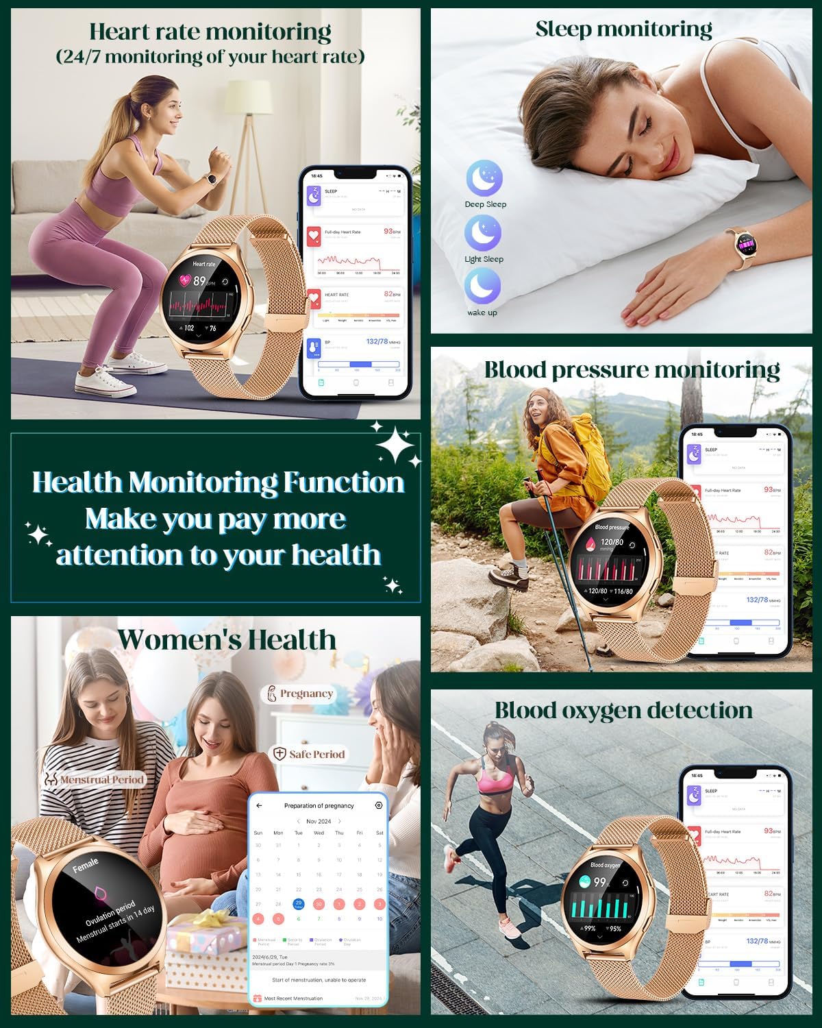 Gold Smartwatch Women's Watch Round: Smart Watch Women's Metal Bracelet with Phone Function Pedometer Sleep Monitor Heart Rate Blood Pressure Waterproof 1.27 Inch Small Thin Touchscreen Sports Fitness