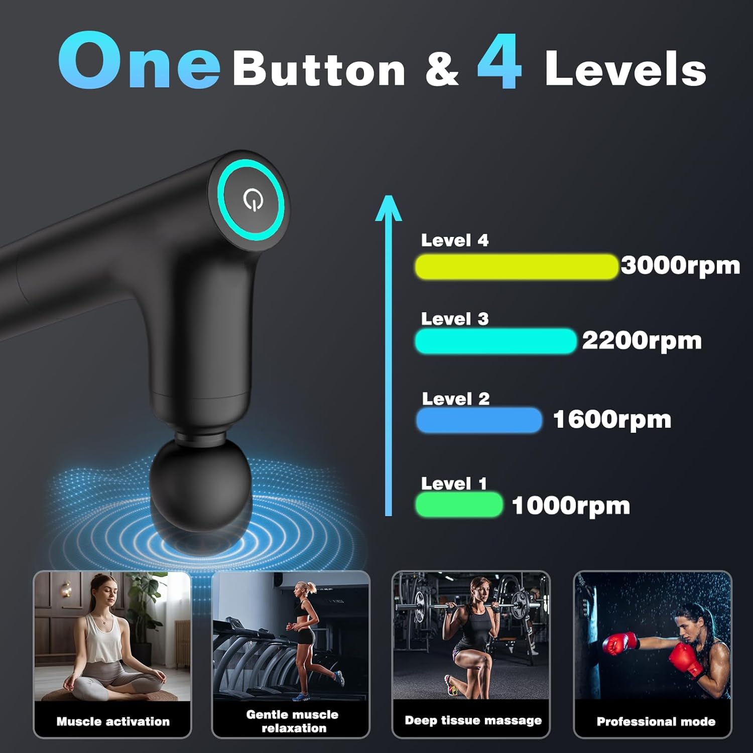 UPSPORT Massage Gun Deep Tissue Muscle Massager with 3-in-1 Detachable Handle Portable Mini Muscle Massager, Full-Body Massage Tool for Back/Neck/Shoulder/Foot Relaxation Up to 3000 RPM for Men/Women